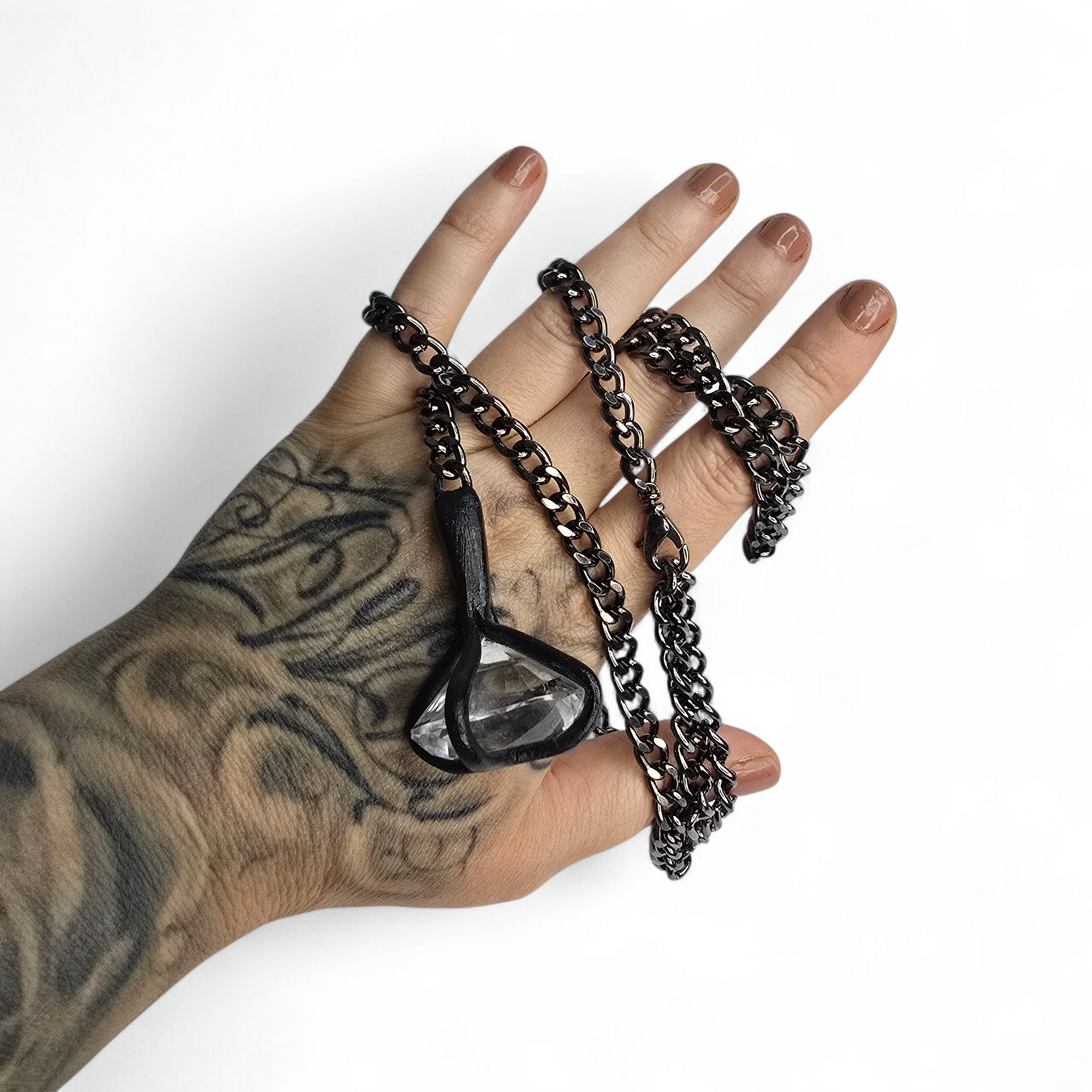 MATERIALS: Crystal + Clay + 8mm gunmetal plated curb chain