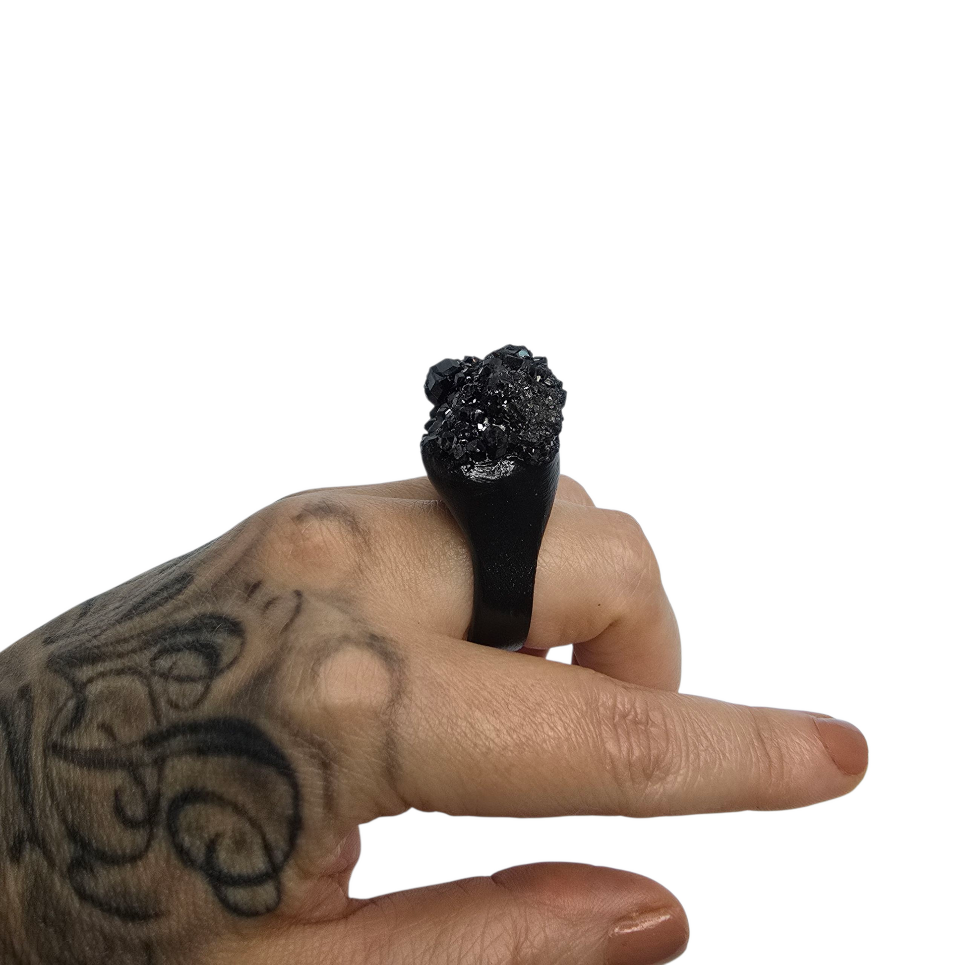 ▪︎ Organic punk jewelry care instructions: Pieces are art first and jewelry second. Therefore please take great care when wearing. Remove rings when washing hands. Do not leave in direct sun. Be mindful to not smack crystal against hard surfaces.