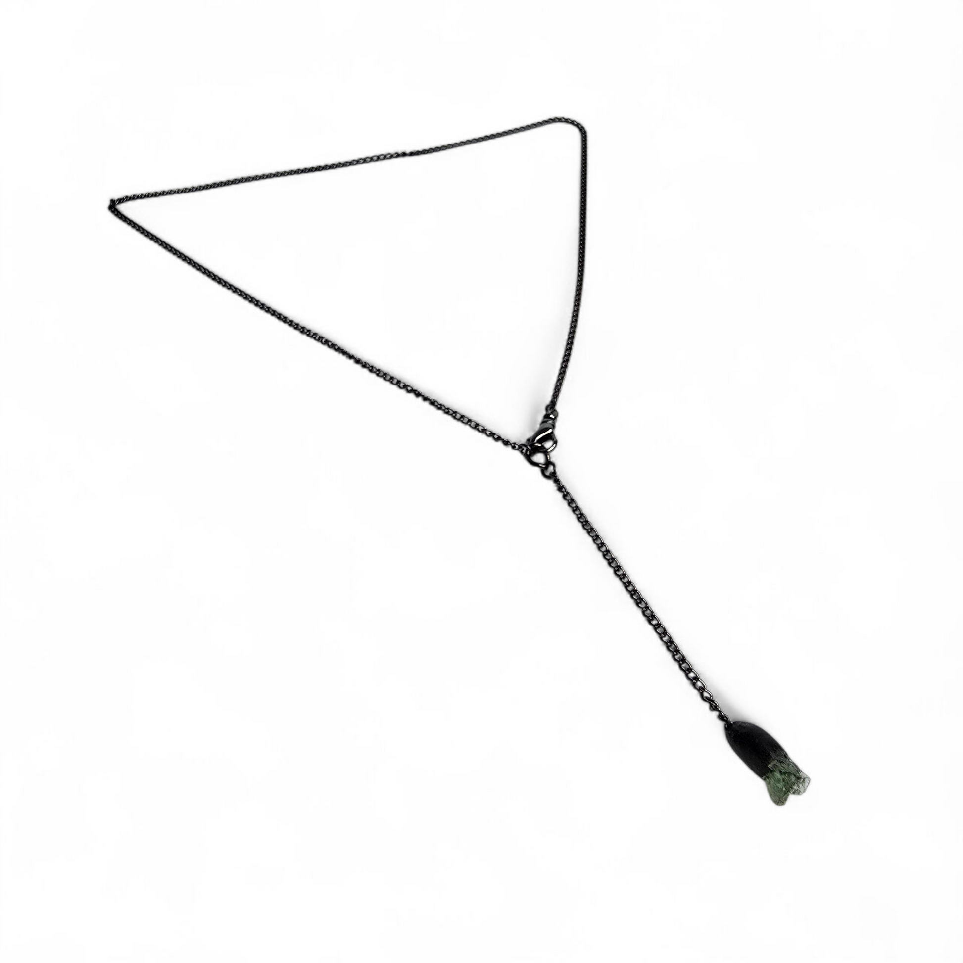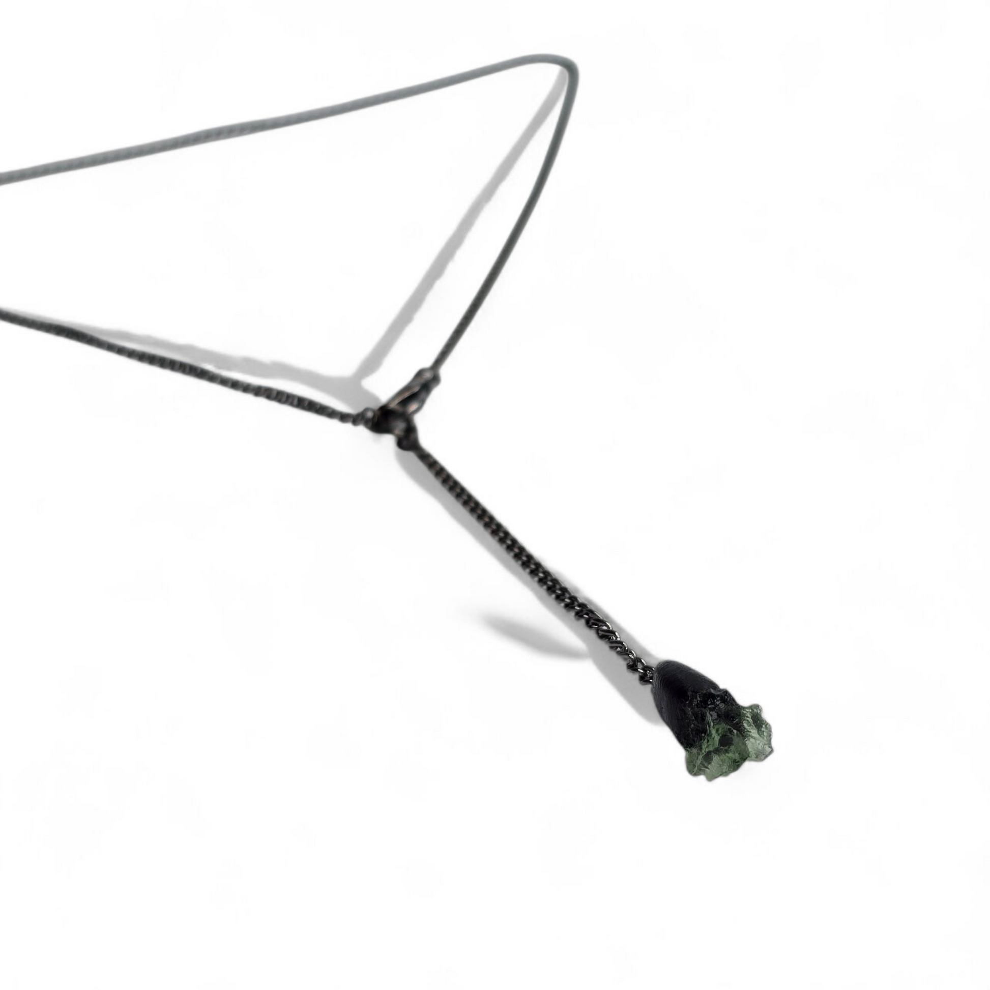 ▪︎ A natural translucent green Moldavite is set with a black acrylic painted clay. A minimalist but impactful design.