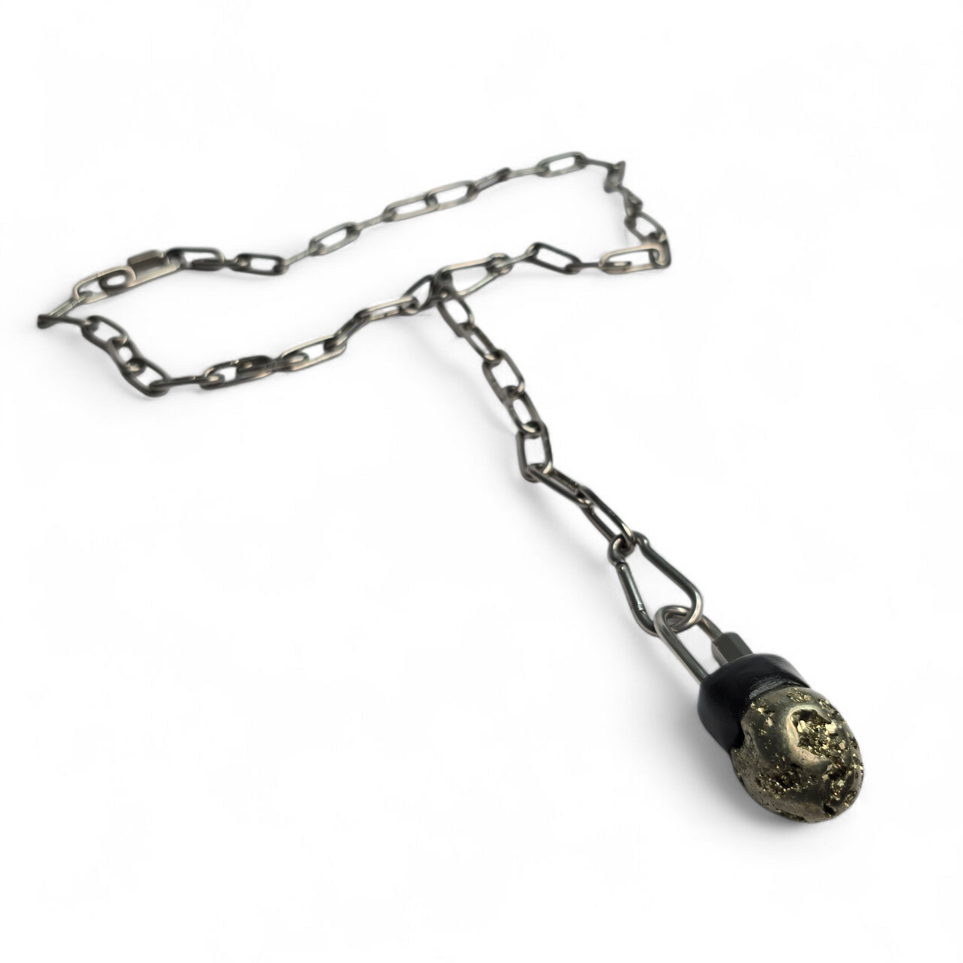 ▪︎ A polished Pyrite is set in a black waterproof acrylic painted clay.