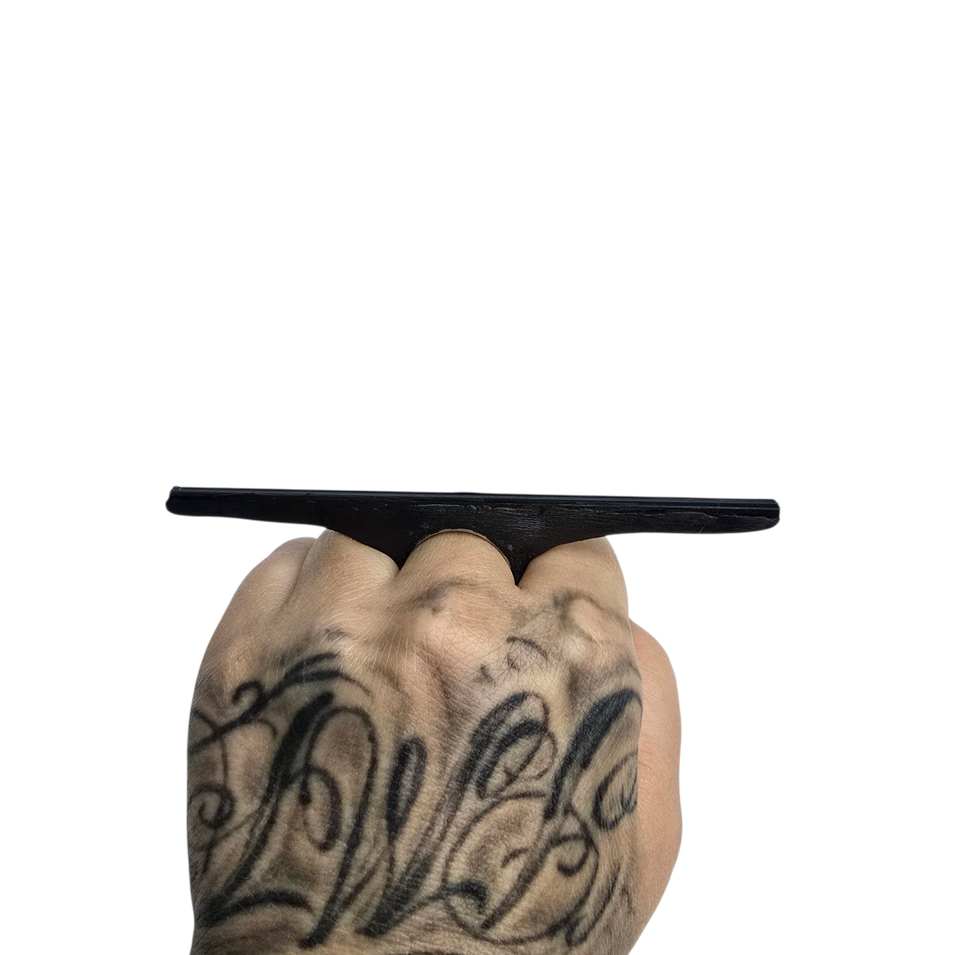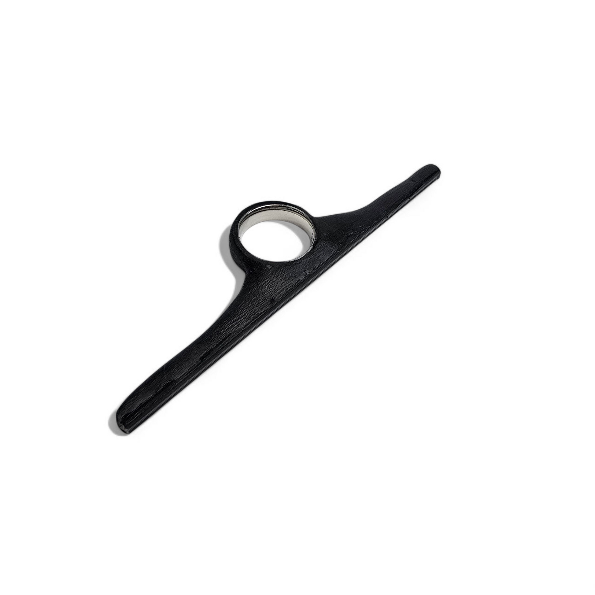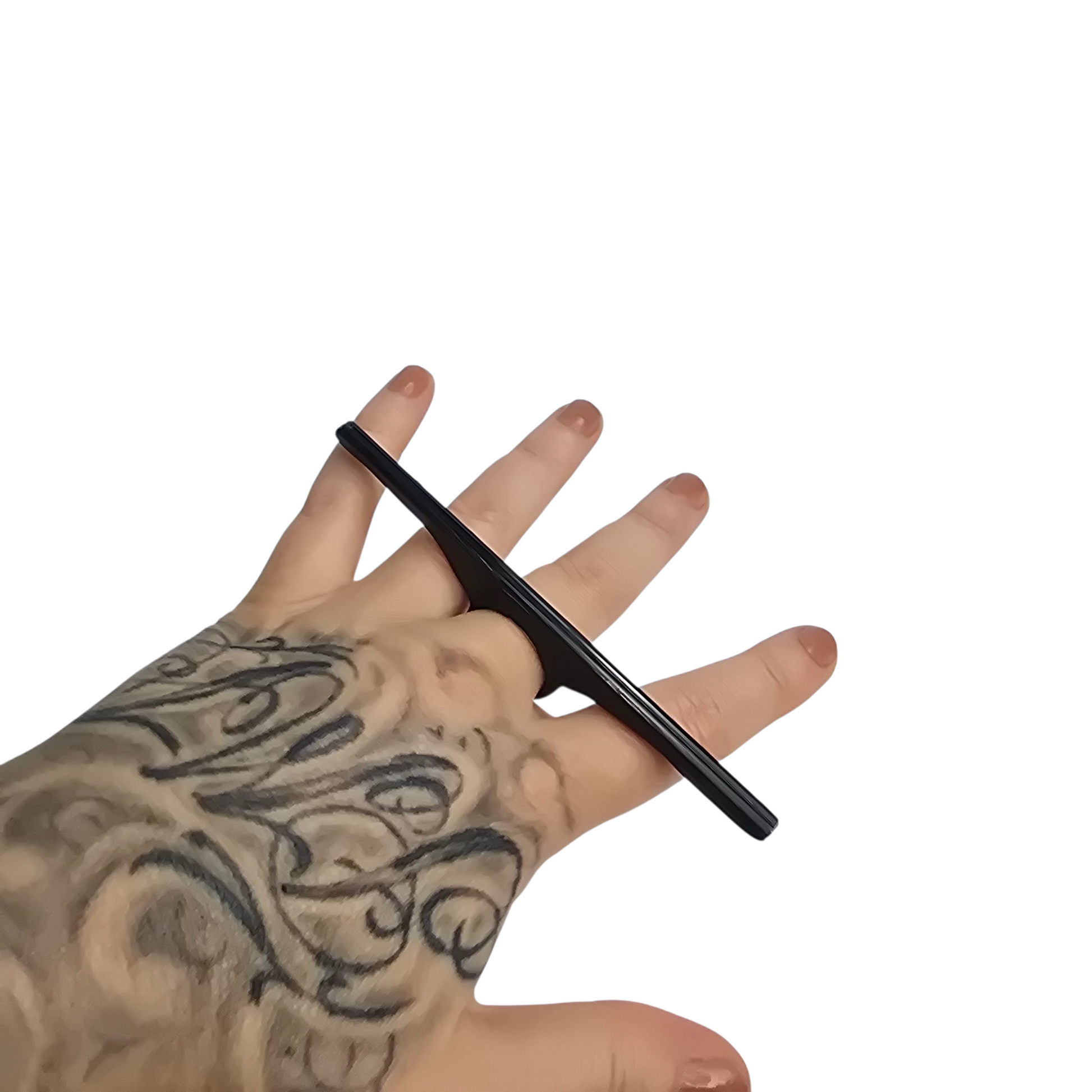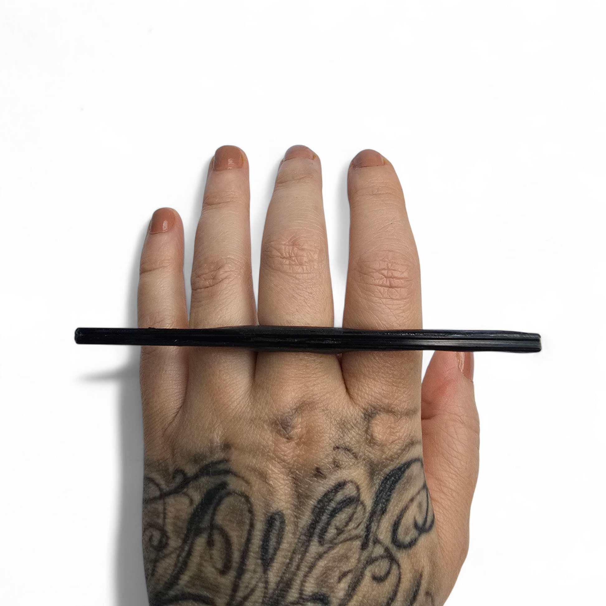 ▪︎ A black Tourmaline is set in a monocromatic black waterproof acrylic painted clay. The silver stainless steel core is engraved with our logo.